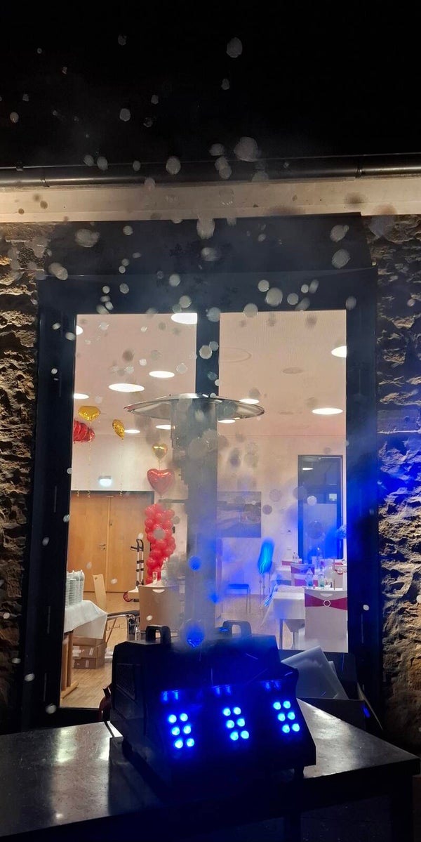 Ob Hochzeit, Geburtstag oder Firmen-Event: Diese Maschine erzeugt faszinierende Seifenblasen, die mit Nebel gefüllt sind und beim Platzen kleine Rauchwolken freisetzen – ein absoluter Hingucker! Dank integrierter LED-Technik können Farben und Stimmungen individuell angepasst werden.
